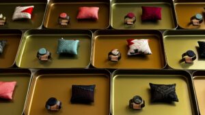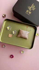裁断位置にこだわりながら一点ずつ小さなピンクッションに仕立てました。